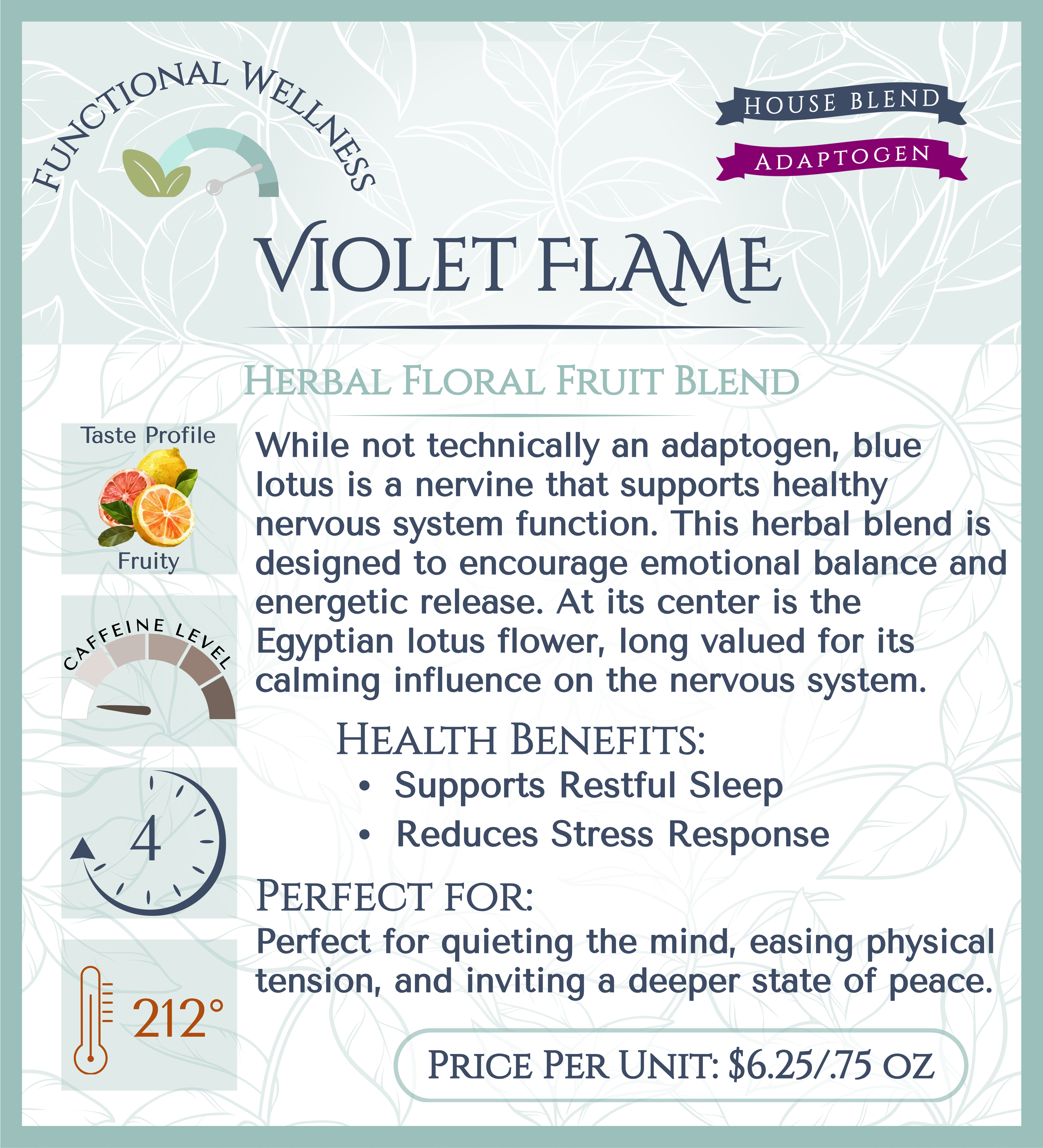 Paired with indigo-hued Butterfly Pea Flowers, apple bits, sugared mango cubes, rosehip husks, and rose petals, this blend brews into an enchanting violet infusion. The result is both beautiful and beneficial - an infusion that offers gentle regulation for the nervous system while awakening the senses.