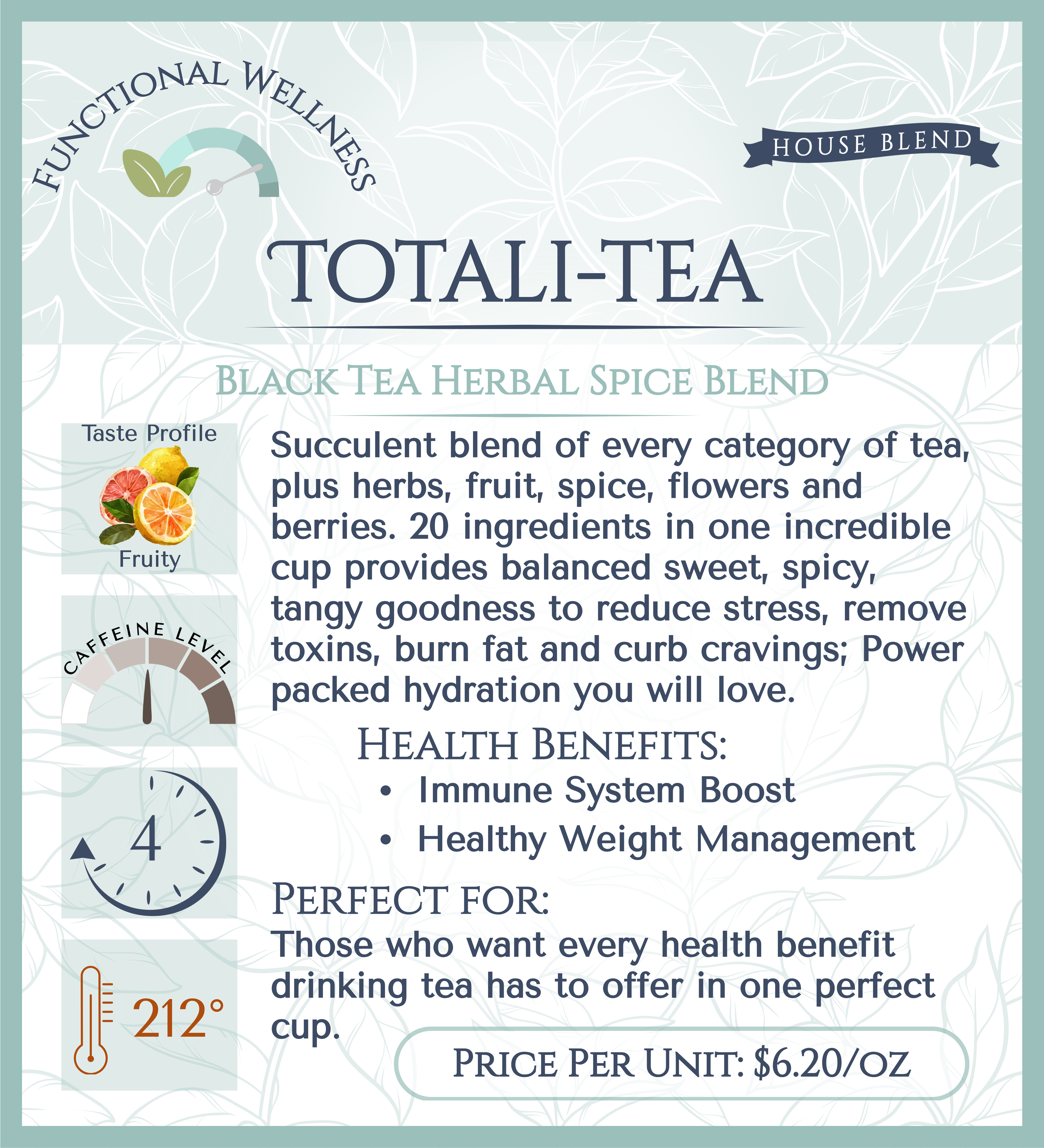 Succulent blend of every category of tea, plus herbs, fruit, spice, flowers and berries. 20 ingredients in one incredible cup provides balanced sweet, spicy, tangy goodness to reduce stress, remove toxins, burn fat and curb cravings; Power packed hydration you will love.