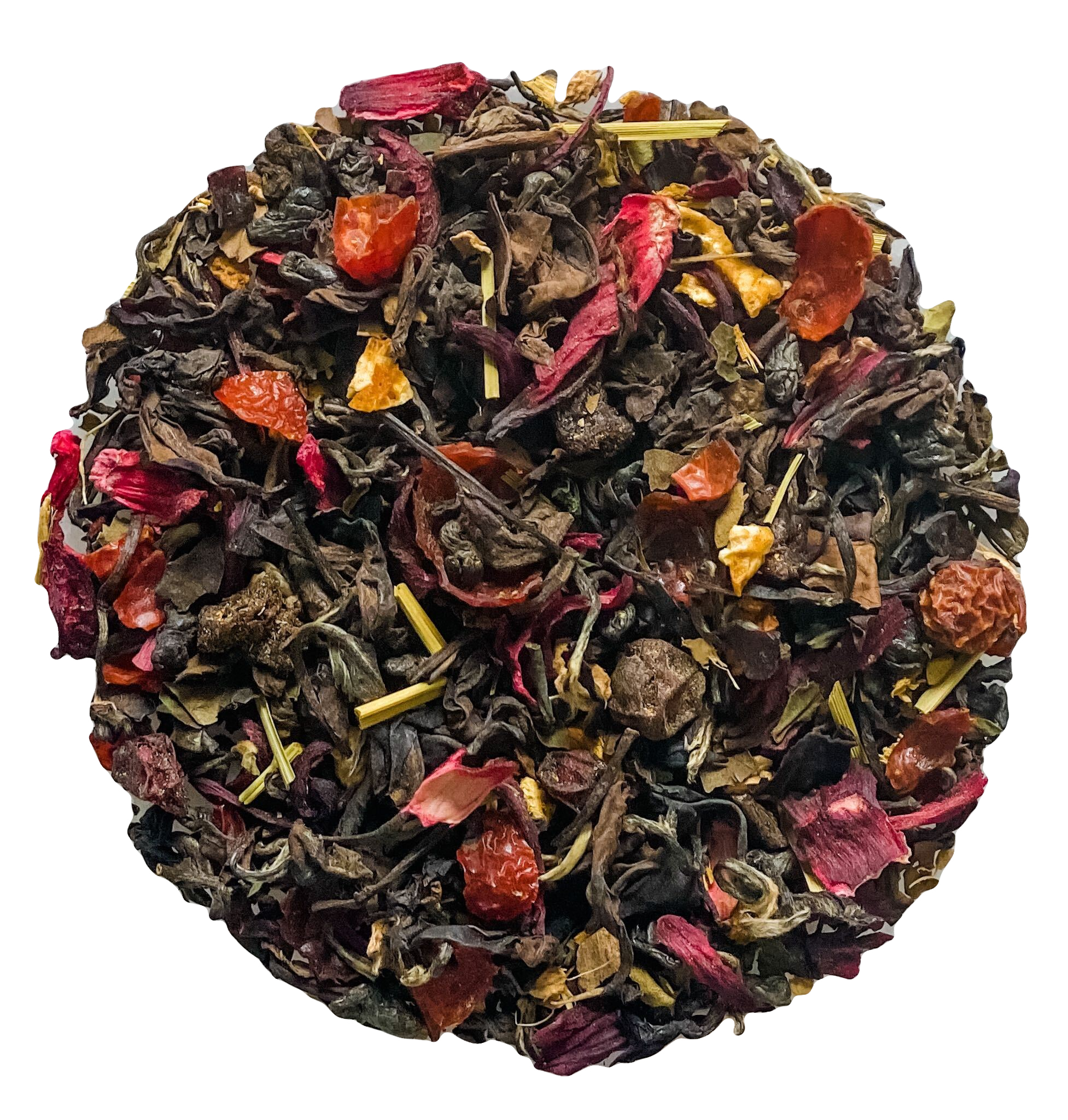 Wuyi oolong, green, white, pu-erh, hibiscus flowers*, ginger root*, rosehips*, licorice root*, orange peel*, schisandra berries*, essential tangerine and orange oils, currents*, natural strawberry and blueberry flavor, grapefruit flavor, vanilla flavor, cinnamon, cloves, natural and artificial flavors. *Indicates organic (USDA Certified).