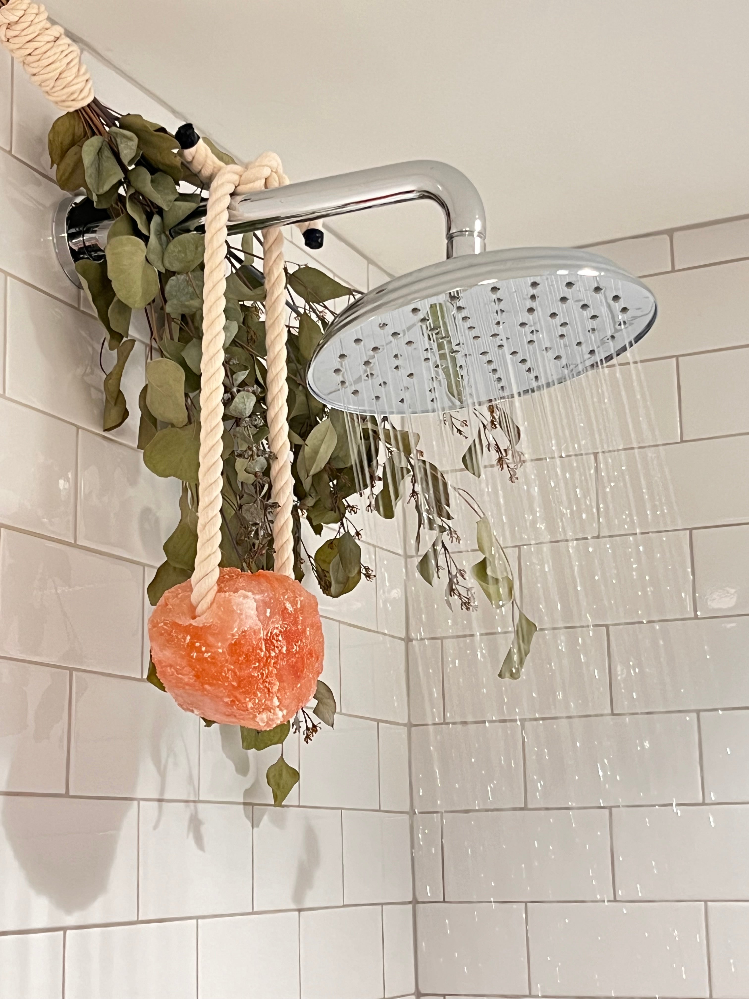 For Showers: Securely hang the salt rock from the shower-head, handle, or place it on the floor.