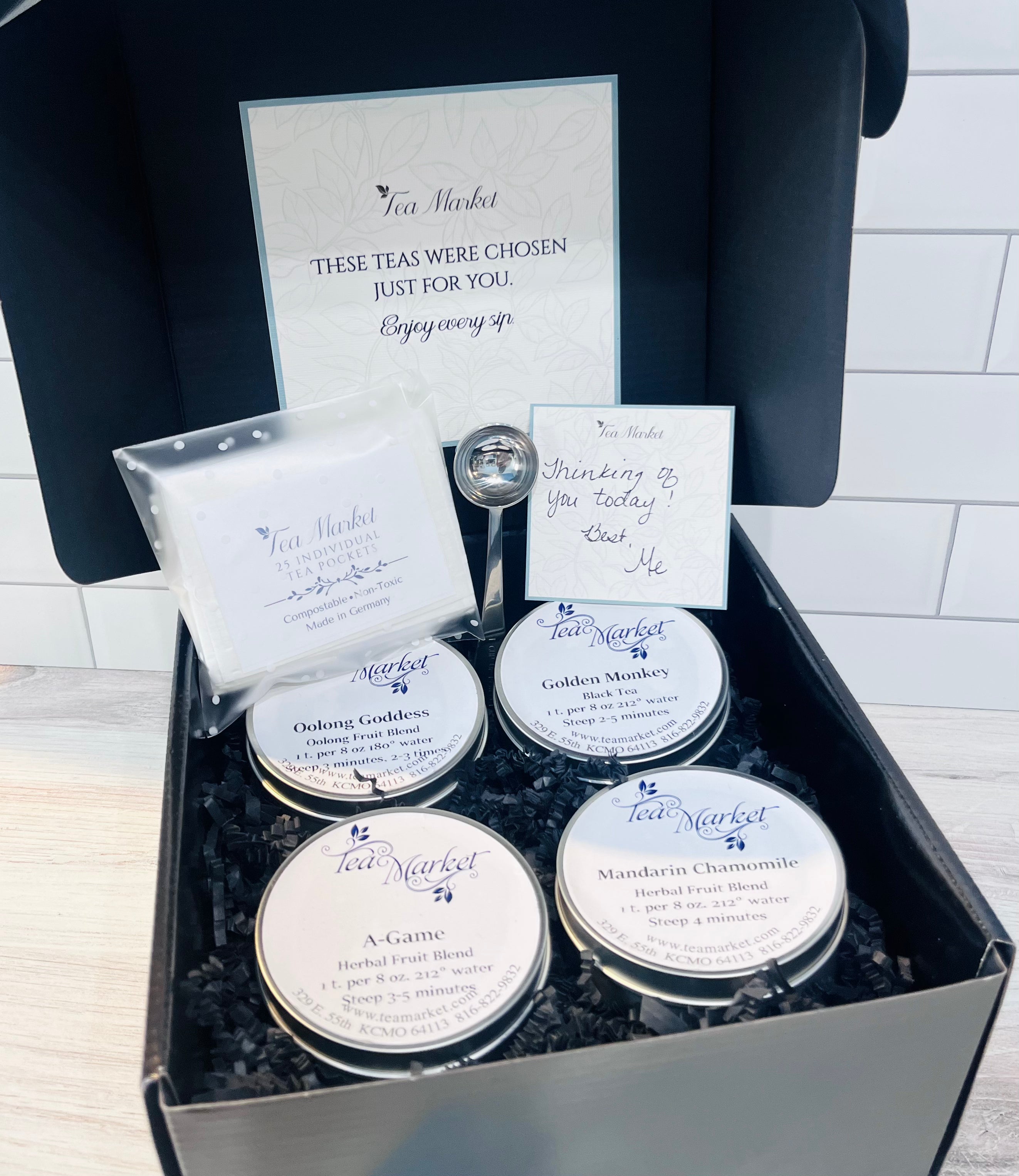 3. Gifting? Add a note in the “These teas were chosen just for you” box and we’ll handwrite it on our fine linen notecard.